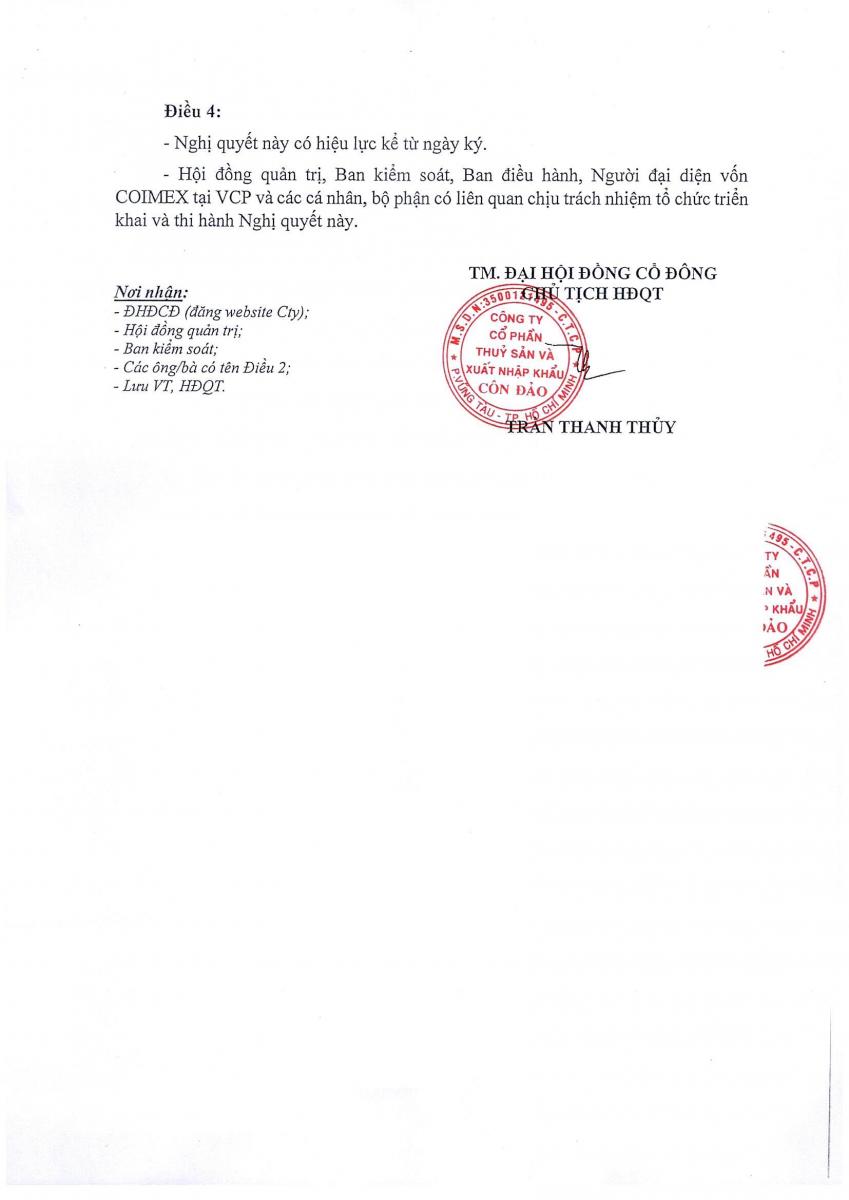 - NGHỊ QUYẾT ĐẠI HỘI ĐỒNG CỔ ĐÔNG THƯỜNG NIÊN NĂM 2024 - CTY CP TS VÀ XNK CÔN ĐẢO